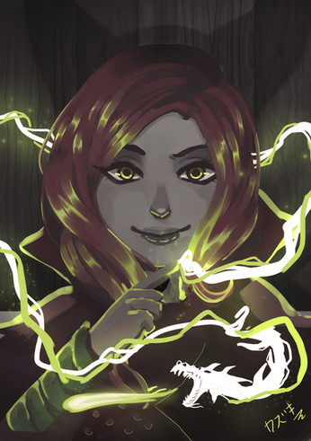 Not much to say about this one xD I guess it's one more of those "I'll just sketch out a random idea I have... oh this looks nice, I'm gonna finish it." Could be some kind of a mage lady with a magical glowy snake,dragon thing o:Related content
