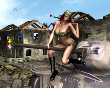En fait, tes pin-ups finissent toujours par se retrouver avec d'Γ©normes objets phalliques entre les cuisses...obus, canons de char, panzerschreck...