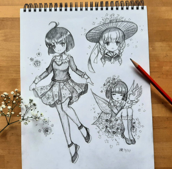 A practice sketch, nothing original, references from artworks on PinterestIt's nice to let loose once in a while, nothing has to be perfect for once, doing our own things with no regrets... 🌼✨
