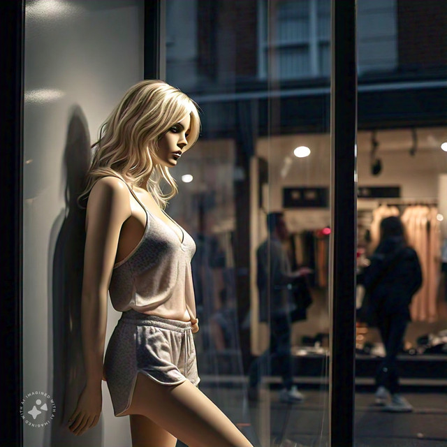 #girl #hair #leaning #lights #mannequin #redlips #sleeping #swimsuit