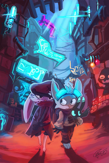 Absolutely love the background, great neon lighting, shading and smooth painting! I also see that little Luna on the side of the bus stop. I like the way you draw rain too