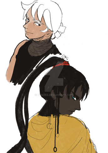 A Work in progress I propably not gonna finish. But it shows two characters of mine.Zian (right)