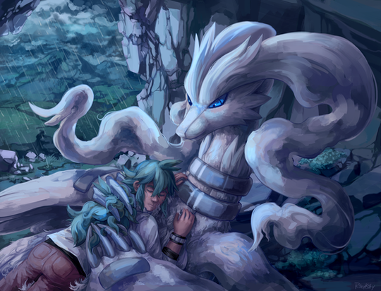 Reshiram's tail looks like a campfire. CX N and Reshiram look so cute together! <3