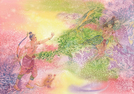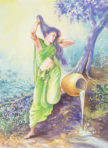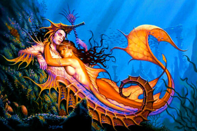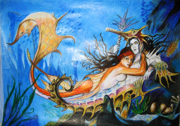 Lovely picture! They way you've done the coral & seaweed & the attention to detail with the merman & lady is awesome. The Indian inspiration is unique too & the little seahorse is just too cute!