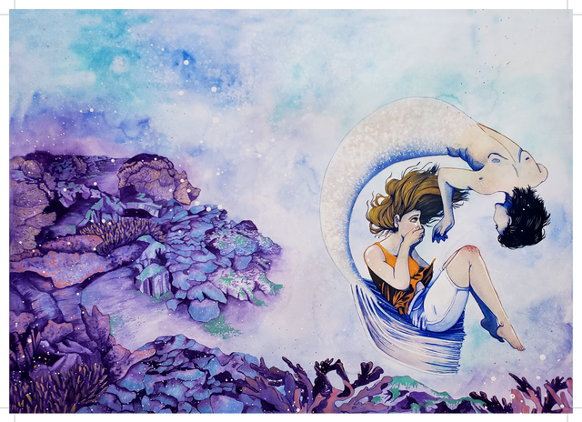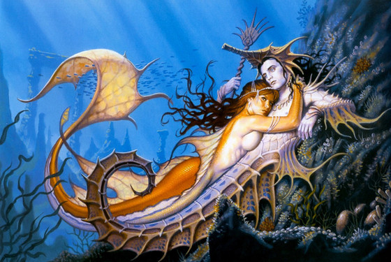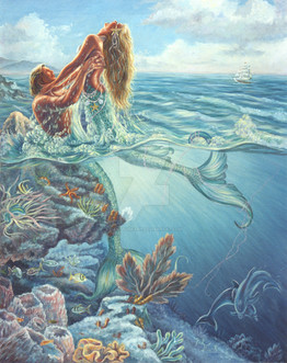 You're so imaginative. I didn't think about it in the first place. The merman is just holding the girl in a very cherishing position, which I like a lot. It suggests the intimacy between the two lovers and simultaneously implies maternal protection.