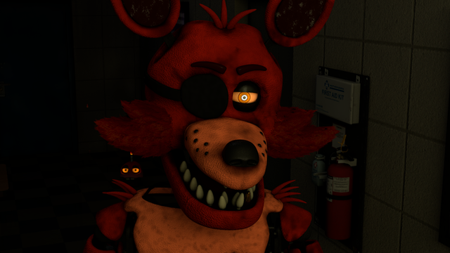 Foxy making his way to the guard who is no longer paying attention to the cove.