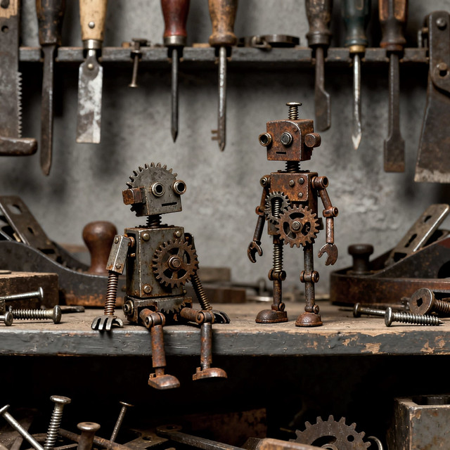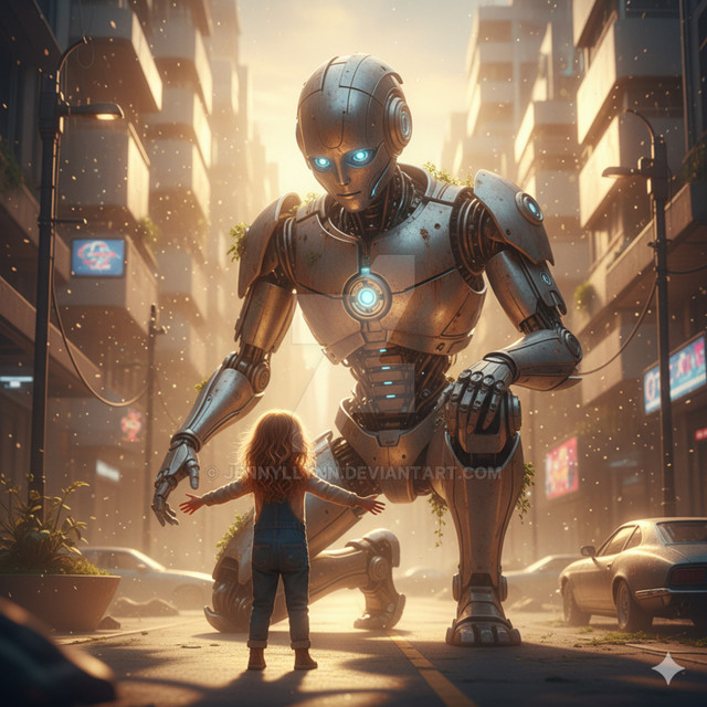 #robot #brass #fog #friend #friends #friendship #machine #steampunk #video #cobblestone_street #scifisaturday #ai_art #ai_generated