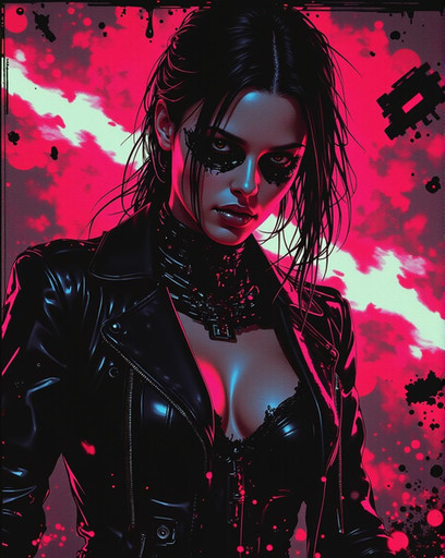 #digitalart #fanart #portrait #videogamefanart #noir #popart #characterdesign #dark #lipstick #monochrome #redeyes #vampire #ai_art #ai_generated