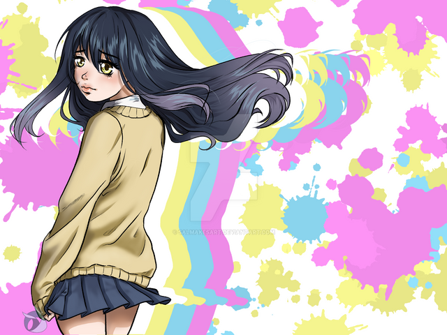 #brush #girl #heart #japan #painter #sakura #school #sky #twitter #uniform #goringo #cherryblossom #graffiti #japanesegirl #original #originalcharacter #painting #student #studentuniform