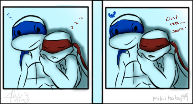 I re-drew one of the pictures in this one of yours^^^^, I changed Leo for Mikey and colored it and gave it a little more detail as well as drew it on normal college ruled paper, I really do want to post it on my profile. I WOULD GIVE YOU FULL CREDIT OF COURSE but I want your permission first, please please please, I've been working on it for a while so whether I just show it to you privately or I can post it on my profile, I want to make sure it's ok with you and I would not do anything without your consent first but please take it under consideration.😃