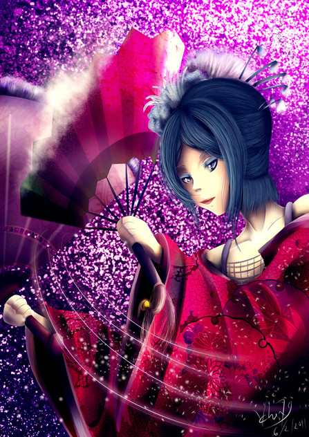 Wow this is so amazing! I love the way you did her eyes they are just beautiful and her facial expression is awesome. The fan and her clothing are beautiful made as well! Everything just fits perfectly!Β