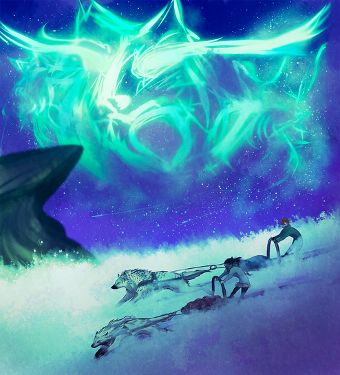Incredible artwork! I really like the composition and the choice of colors, you did a great job with values! The anatomy looks on point and I love the idea of the painting, he looking at the running wolf spirits in the sky makes the painting really interesting! Your style is really beautiful as well, but the only thing that doesn't really look so good for me is the bright yellow at the bottom of the mountains. At first I couldn't really get there this light comes from it looks a bit off, but then I looked a little bit more for me it started to look as a fire in the woods ( I doubt it was the fire you had in mind then painted taught) Overall I love this stunning work of yours! Can't wait to see more works from you!