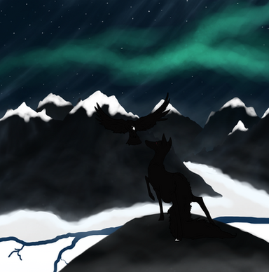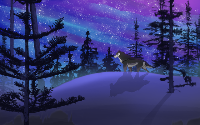 This is a beautiful painting. I love the technique you used to paint the sky wolves. Well done!