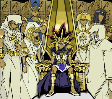 YAY! Atem and all his wonderful priests: uncle bastard, the asshole rival, the bitch that says things we don't understand, the submissive slave who kills himself like a dumbass, the bald guy that helped the asshole rival kidnap a young peasant girl, and that guy we tend to forget exists in the show. Our heroes ladies and gentlemen!