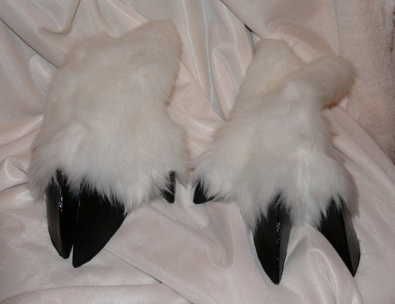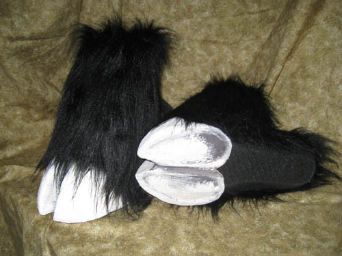 my first pair of hooves i made back in february 2013. I call them the real-digi style because they have no heel, you walk on the balls of your feet, forcing a natural digitigrade stance. :>