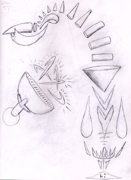 i realize it may look inked but my habit is to draw and then erase, slowly moving the lines to where i would have them granted more fine-motor-control. i was most happy with the 'stripped down' look given by the touch surfaces implied on the fingertips. (their flush with 'where it should be' in the human form, the remainder of the figure is 'thinner.')