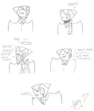 Middle from the left: Me and opal carryed Nos to his coffin cause he had fell over from an overload (We annoyed him to much XD) and he was saying thank you to the both of us for taking him to his coffin/NOS: Thank you~ I suppose.../, then Nos was rubbing his head because me and Opal were being annoying again /NOS: (He's supposed to be saying) You BOTH are going to be the death of me... AGAIN/