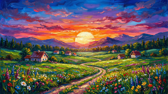 #landscapepainting #digitalart #creativeart #landscape #sunset #aiart #midjourney