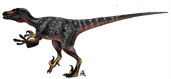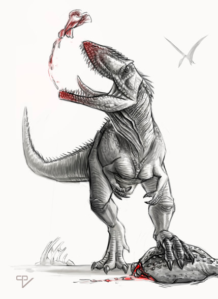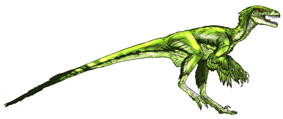 This is a drawing I made seven years ago, when I was starting to learn Photoshop, and I still like it.The figure and color scheme are based in JP3 male raptors, which I think are beautiful.
