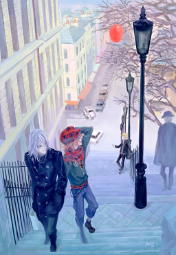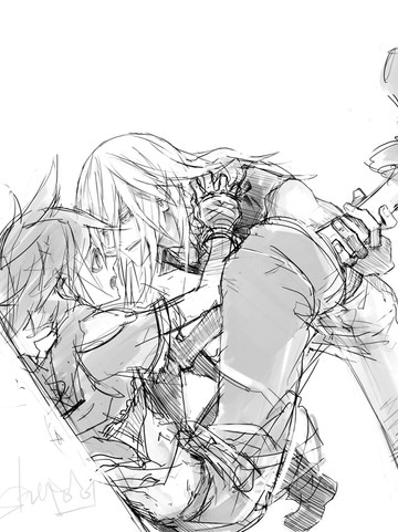 i'm not sure if i've commented on this b4 but it is so beautifully dramatic. violently love the pairing. i like how the characters and the umbrella stick out against the background. the b&w is a perfect touch. if it was in color it would've lost a lot of it's greatness. awesome.