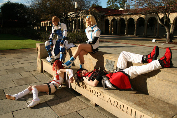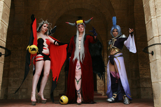 Taking big group shots is always tricky, particularly if there are multiple photographers. There's always going to be a couple of cosplayers not looking at the right camera at the right time. ...but that's why we have Photoshop, isn't it?This picture has pieces from several photos: one for the exposure on the front characters, one for the back row and arches, and a few extras with characters in better poses than the base picture. This is why I take a bazillion photos of each set up!