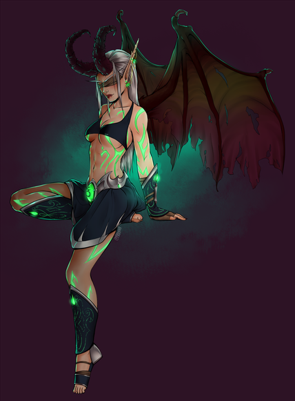 Really fun commission for Pawsy of her undead blood elfi put a buttload of effort and time into painting that background >_o