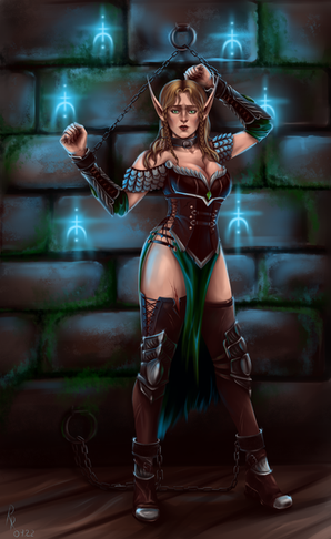 The anatomy and the pose are really well done. I am also a fan of how you did the seam of the tabard on her side, and how you have a bit of the tabard hanging over her belt to give her a more realistic figure/pose.