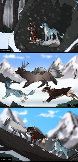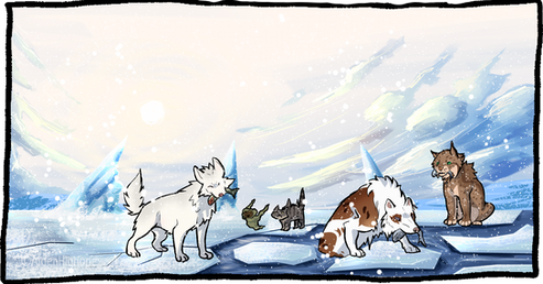 Seasons come, seasons go. Roe, Bruce and Rocky decide to go on an adventure as the cool fall takes Ulfrheim in it's grip.I don't have an explination for the winter icicles, I just really wanted to draw the scene.