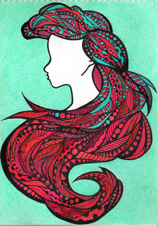 I must say you have a way with colors! I especially like the use of complimentaries violet and yellows. The tigers head is drawn and colored beautifully. Could use some solid, dark outlines.