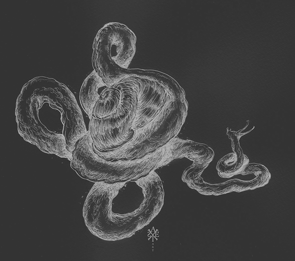 L'animal emblématique de mon univers, inspiré à l'origine du serpent à tête de bélier du dieu Cernunnos.