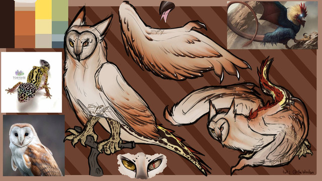 - unlike birds, she can move each talon independently, making it possible for her to use her feet as hands, she's also very skilled with them, being able to writte, use a bow and even braid someone else's hair if she wants to.