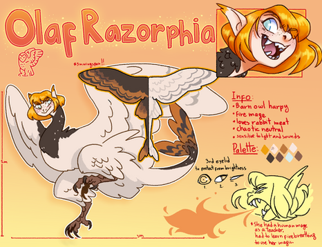 She can use her talons just as human hands to write, use tools and weapons, one of her favorites being the bow. She’s a skilled hunter and a professional archer, but since she has to use her talons, she can’t fire while being on the ground.