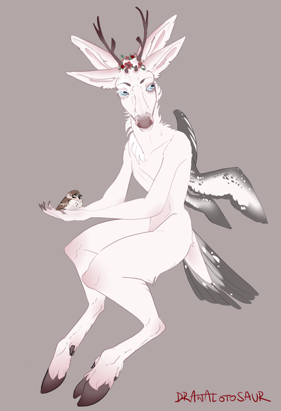 Snow is a harpy, a creature usually depicted as terrible and wild in many legends, luckily, this is not her case, at least not as much. She's as intelligent as an average human being, but mostly driven by instinct and a very birdlike behavior. She’s smart enough to understand some abstract concepts (like love, hospitality, etc.), read and learn other languages, even have pets if necessary, but since she rather live away from civilization, hunt her food and sleep in trees and caves, she can be easily confused by a wild bird-brained harpy.