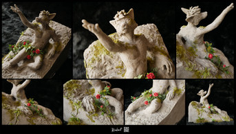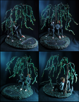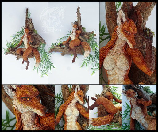 This was my first time using Super Sculpey and am very satisfied with the material. The pose itself was a complete pain in the ass from the very beginning. I did not consider how complicated it would be to mold such complicated shape. Making the texture was no easier. It remained a complete pain in the ass till the very end D: it even tipped over once during baking.But here's the end result