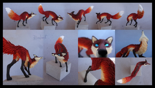 #female #flower #fluffy #fox #red #sculpture #traditional #art