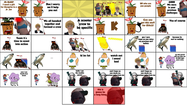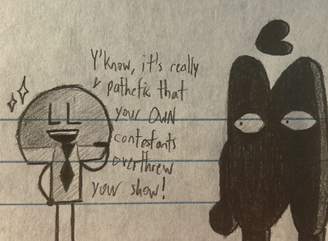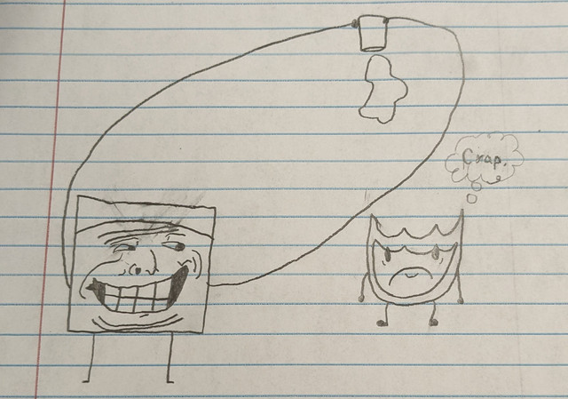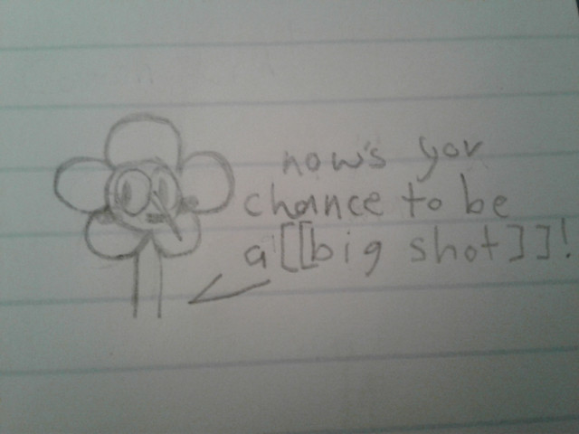 oops. i forgot the personality. he is idiotic, lucky, and oblivious to things that are implied. he also likes doodling, procrastinating, and doodling while procrastinating. he doesnt like mean people, chocolate pudding, or nails on a chalkboard