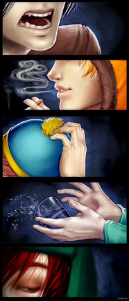 Oh my god... ; ; I died a little bit inside (in a good way) when I saw this... this is ASTOUNDINGLY gorgeous <3 Like seriously ;v; You shld be very proud of yourself cuz this is really really fantastic Omg Its amazing like with that red line... and the emotion in all the characters is breath taking...a and how the dolls of them in SP style are there... just wow