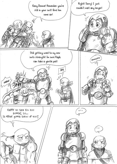 Happy 4th, everyone! Here’s a little somethin’ I promised a while back that I can’t wait to color to post because I’m so happy with it. ;D (But don’t worry, COLORING WILL HAPPEN!)My headcanon: the turtles can’t understand the penguins, which is why Kowalksi is communicating via the penguins’ Speak-N-Say. Leo can’t actually understand what Skipper’s saying, but I had to have SOMEONE talking in that panel. XD (Also I totally want to draw more pictures of Skipper and Leo sparring now.)