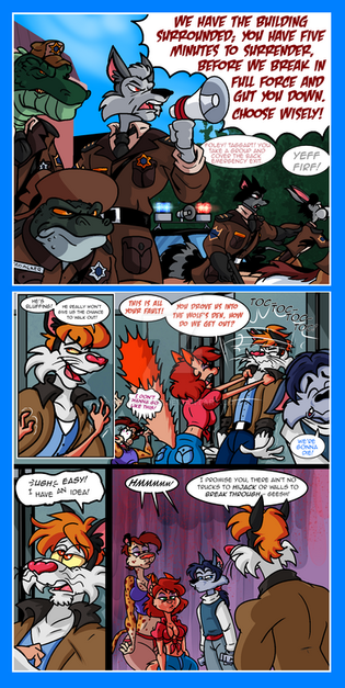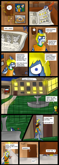 -Doodlee’s hat and Wings’ antennae, which apparently I was incapable of remembering after the first panel until I inked everything. I also forgot the fin on Doodlee’s arm in the fifth panel and the fact that Rise’s elbows have bumps and not spikes on them, but digital editing can do amazing things!