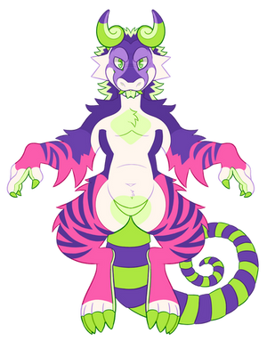 Unknown Coven / Standard Body / Standard Face / Medium horns (cut) / long tail / Soft paws / colored sclera / colored pupil