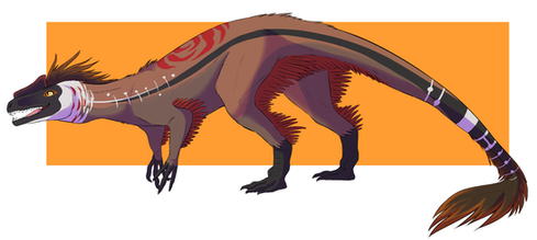 EDIT 8/14/2021: Gave her a bit of a redesign. I swapped out the back speckles for elongating the neck stripe. Also changed out the proportions and made a slight alternate design. I have a made up race of sentient reptile, avian, and human genetic hybrids called the Tyrann who start out life as slightly larger then human humanoid creatures who fully mature at around age 80 into a large theropod like form. I might make a break down into it more later on. But I've lately been I guess retconning most of my theropod characters to be Tyrann. Here's a link to her alternative Tyrann design:sta.sh/0t42ma5496r