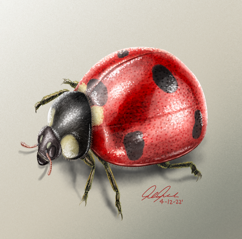 (I had to look up the species because I don't know anything about insects xD but I found out that the ladybug on the photo reference should be a seven-spotted ladybug; see Wikipedia .)