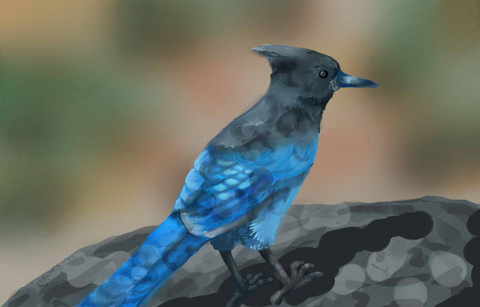 Speedpaint practice, and took this photo as the reference. I have a new laptop with a new Photoshop version (from CS4 to CS6) so everything is different XDSteller's jay (Cyanocitta stelleri)