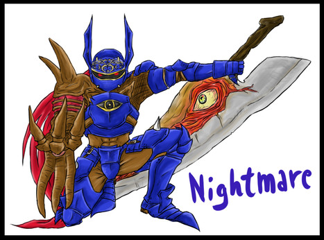 Nightmare= epic, giant living sword, giant dragon/demon hand and some fucking awsome armor