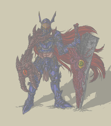 Badass incarnate. Excellently drawn, with great attention to the details of his armor and blade. Well done.