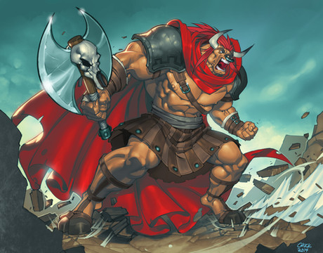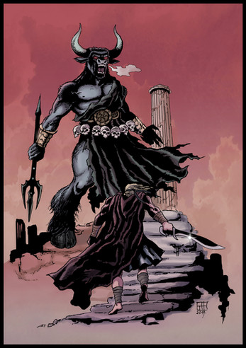The slight blur on the Minotaur's arm is a great touch. By the way the breaking column seems so much closer than the whole one, I'm put in mind of MC Escher's Belvedere. [link]