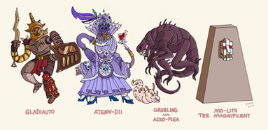 Bagan had a tumultuous conceptual history, with many designs left on the cutting room floor. An idea I really like is that they’re all various forms Bagan took after its destruction, always to return with a new body, culminating with its grey, three horned form (pictured at bottom right).