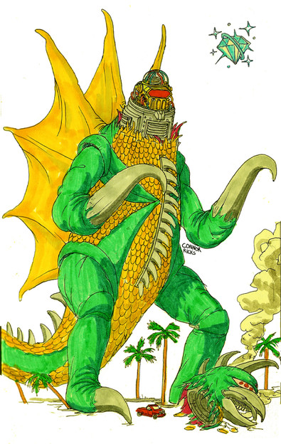 (This is based on the unmade Toho film ‘Godzilla vs. Gigamoth’, which ultimately got rewritten and turned into the film ‘Godzilla and Mothra: The Battle for Earth’)