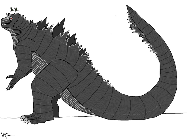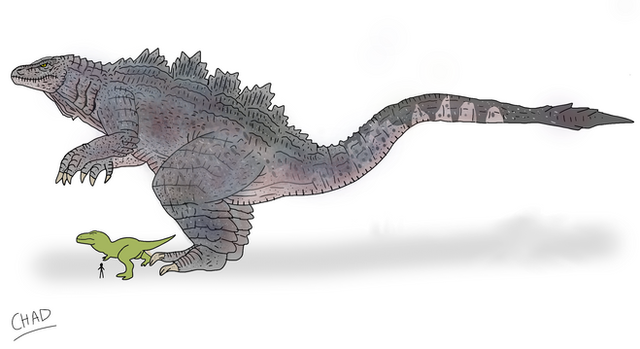 Almost didn’t do this one, on account of a Godzilla with raptor features could just end up being Zilla/Gino/Godzilla1998. Adding Godzilla’s distinctive low center of gravity as well as (hopefully) appropriately positioned raptor arms helped move it along.