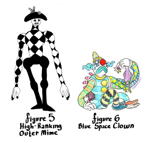 Exposing a human being to a clown patch and the Mime’s striped liquid simultaneously may result in a Skomorph , a being with qualities of both a Space Clown and an Outer Mime, to varying degrees.